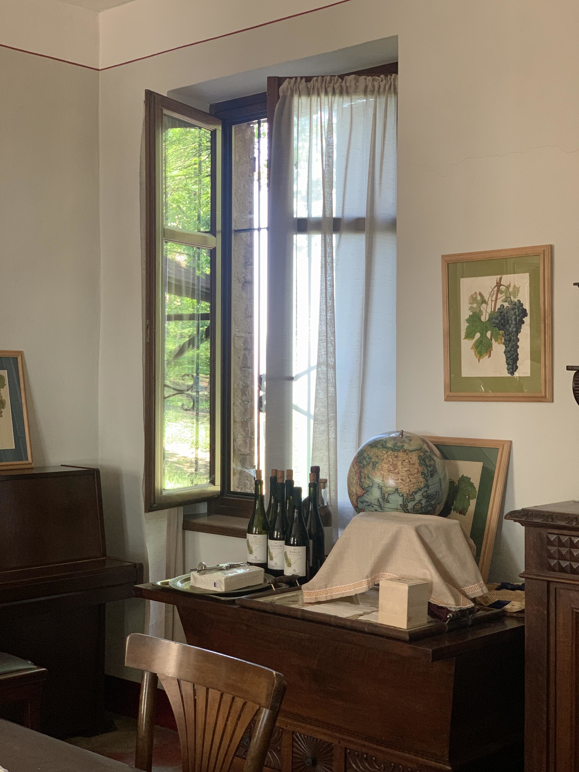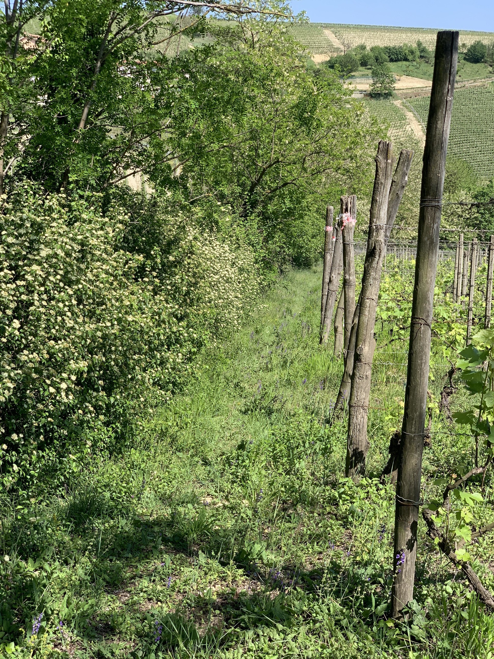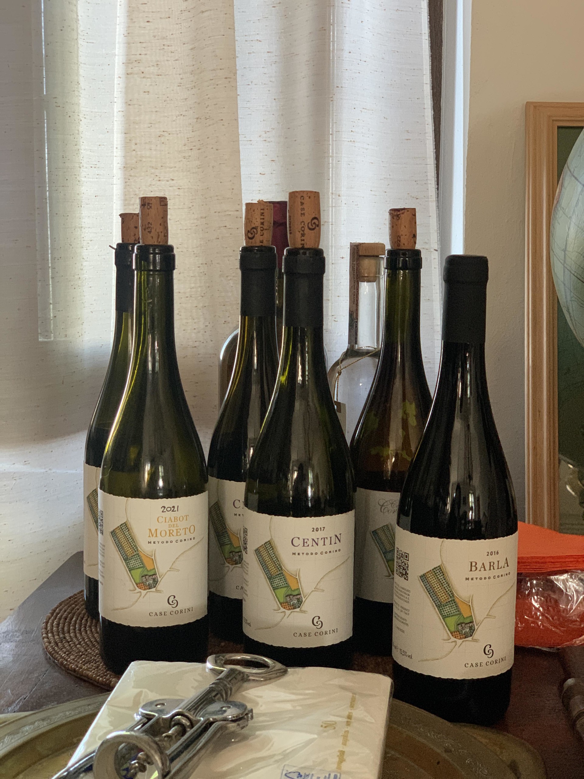 카제 코리니를 방문하여 귀도 코리니와 정말 많은 이야기를 나누고 포도밭을 둘러보았는데, 7시간 넘게 있었음에도 다음 와이너리로 떠나고 싶지 않을 정도로 인상적인 경험이었습니다. 귀도의 할아버지가 가장 처음 산 밭은 밟을 때마다 솜사탕처럼 폭신해서 깜짝 놀랐는데, 80년 넘게 트랙터 등 기계를 쓰지 않아 흙에 산소층이 형성되었기 때문이고, 또한 포도밭은 여러 식물과 꽃들로 덮여 있어 비가 흙 위로 흘러내리지 않고 대신 흙 안으로 스며들어서 몇 개월간 비가 오지 않아도 포도 나무의 생존이 가능하다고 합니다. 가장 오래된 포도밭은 바르베라를 주품종으로 약 100-150가지의 품종이 박물관처럼 1,2그루씩 심어져 있었습니다. 이 지역에 맞는 포도 품종을 찾고 또 되살리기 위함입니다. 수확은 9월 말부터 한 달 동안 진행하는데, 코리니의 밭은 프루닝이 늦은 편이고, 또한 잔디를 늦게 제거하여 흙의 온도가 낮고, 9월 중순에도 여전히 포도밭의 기온이 높은 편이라 충분히 포도가 더 익을 수 있기 때문입니다. 다만 비의 위험이 있는데, 수확철에는 아주 예민하게 매 시간 날씨를 관찰하여 손실을 줄이지만, 차라리 포도를 일부 잃더라도 더 높은 품질의 포도를 수확하는 게 낫다고 합니다. 귀도는 모든 노력은 밭에서 이루어지고 셀러에서는 크게 할 일이 없기 때문에 밭을 얼마나 잘 가꾸느냐가 와인 메이킹의 모든 것이라고 이야기 했습니다.
